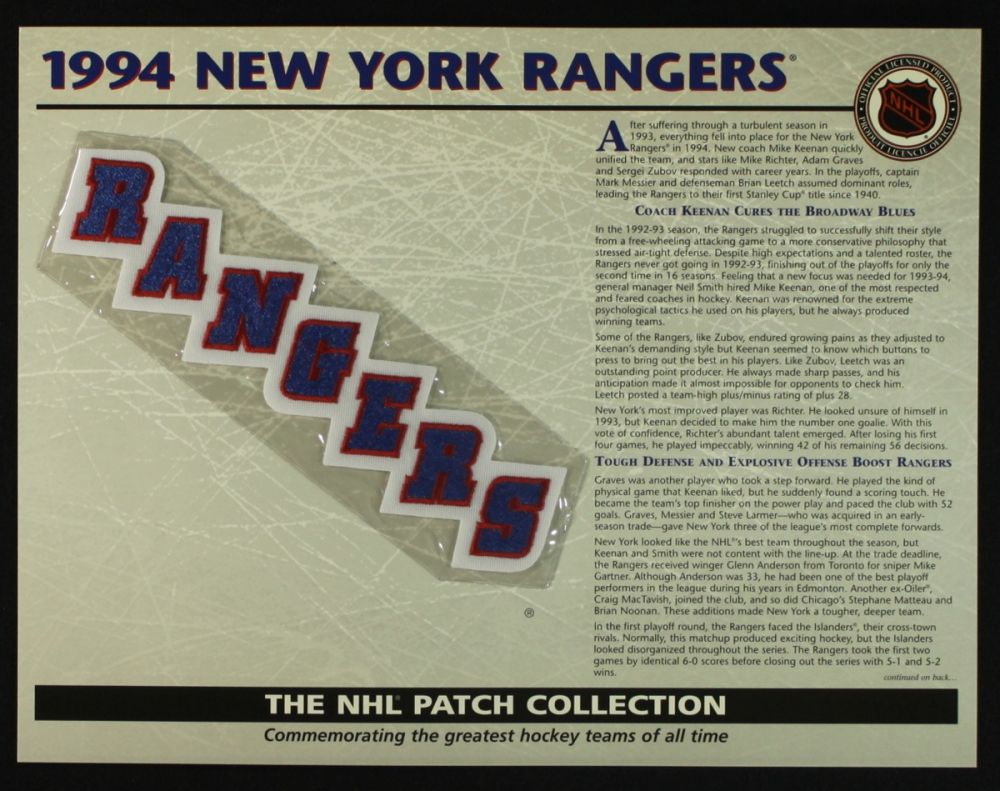 1994 New York Rangers 13x10 NHL Collection Commemorative Patch Display