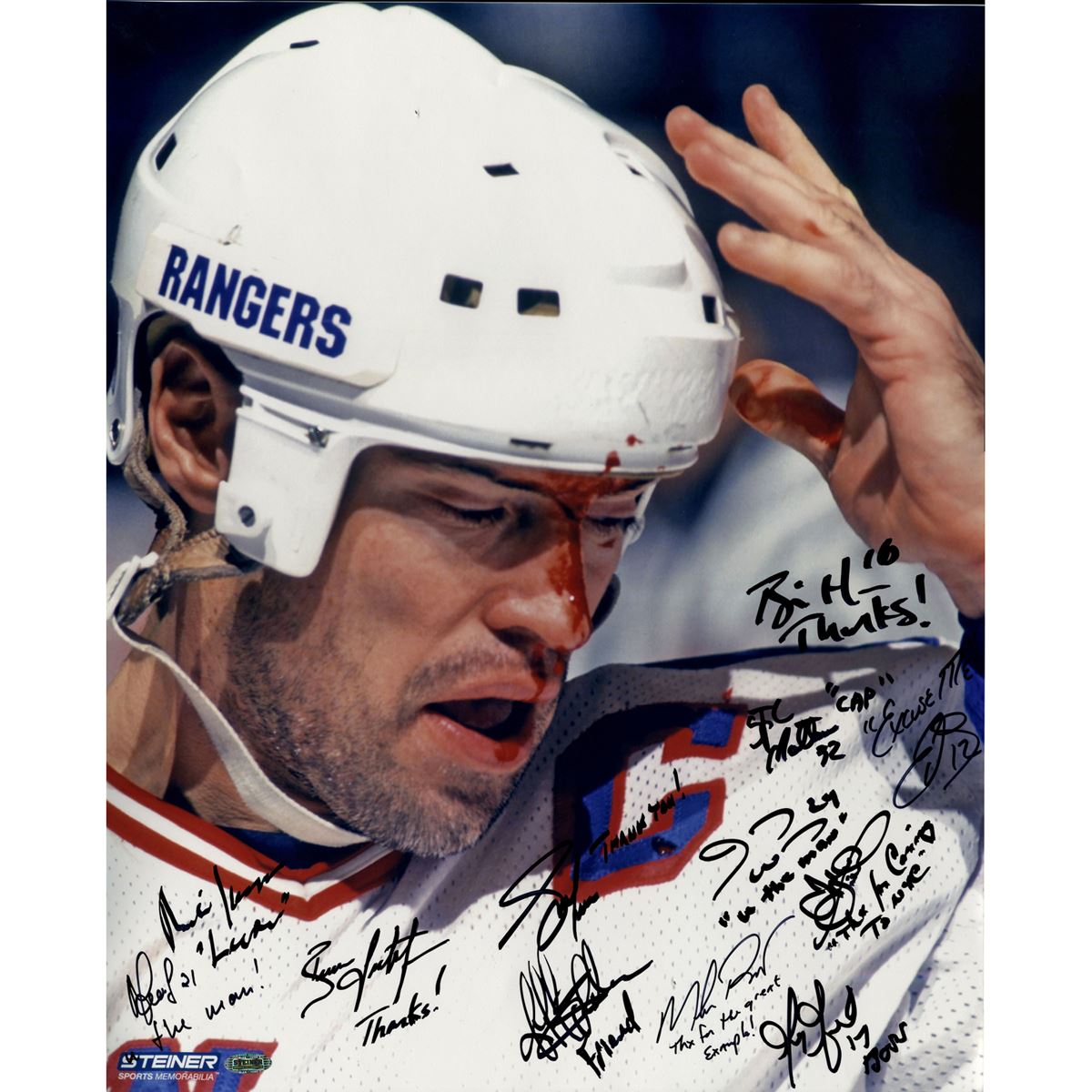 1994 New York Rangers Multi Signed and Inscribed Mark Messier Blood 16x20 Metallic Photo (Signed in Black) (12 Sigs)