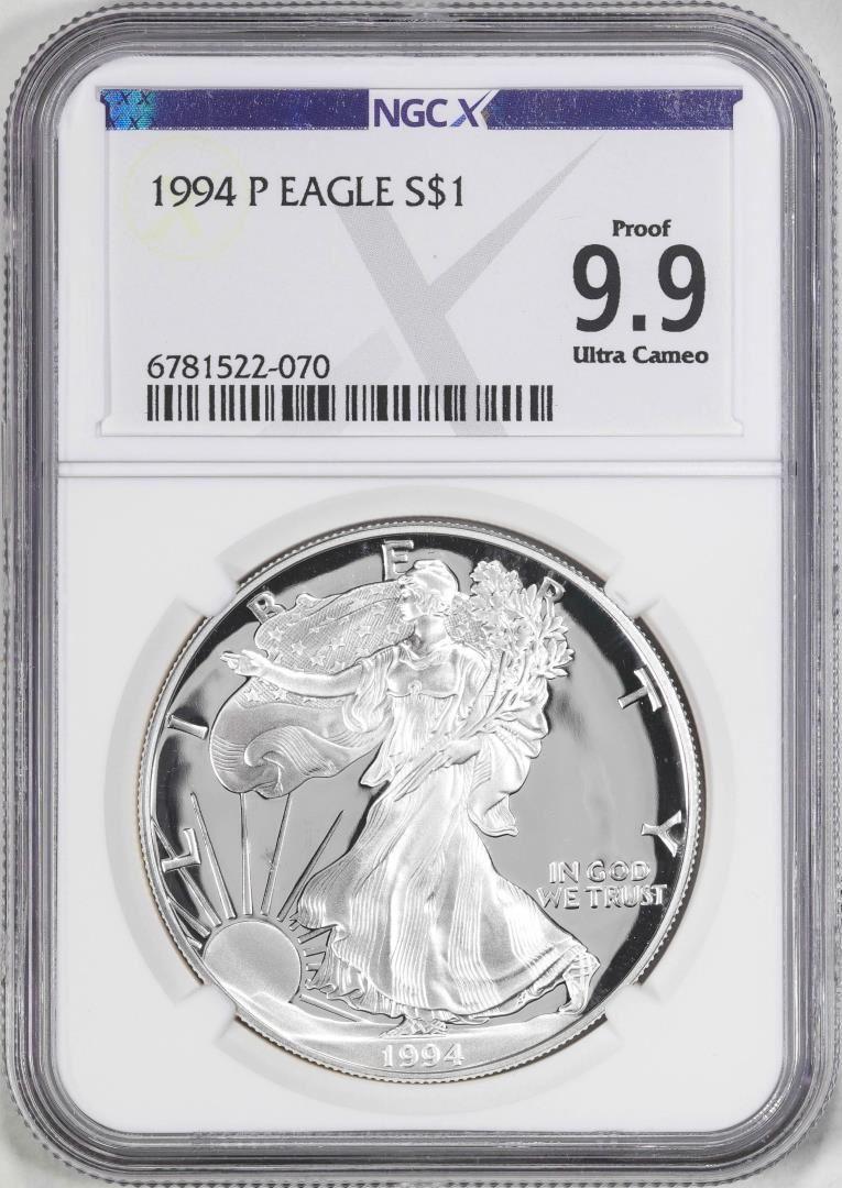 1994-P $1 Proof American Silver Eagle Coin NGCX Proof 9.9 Ultra Cameo