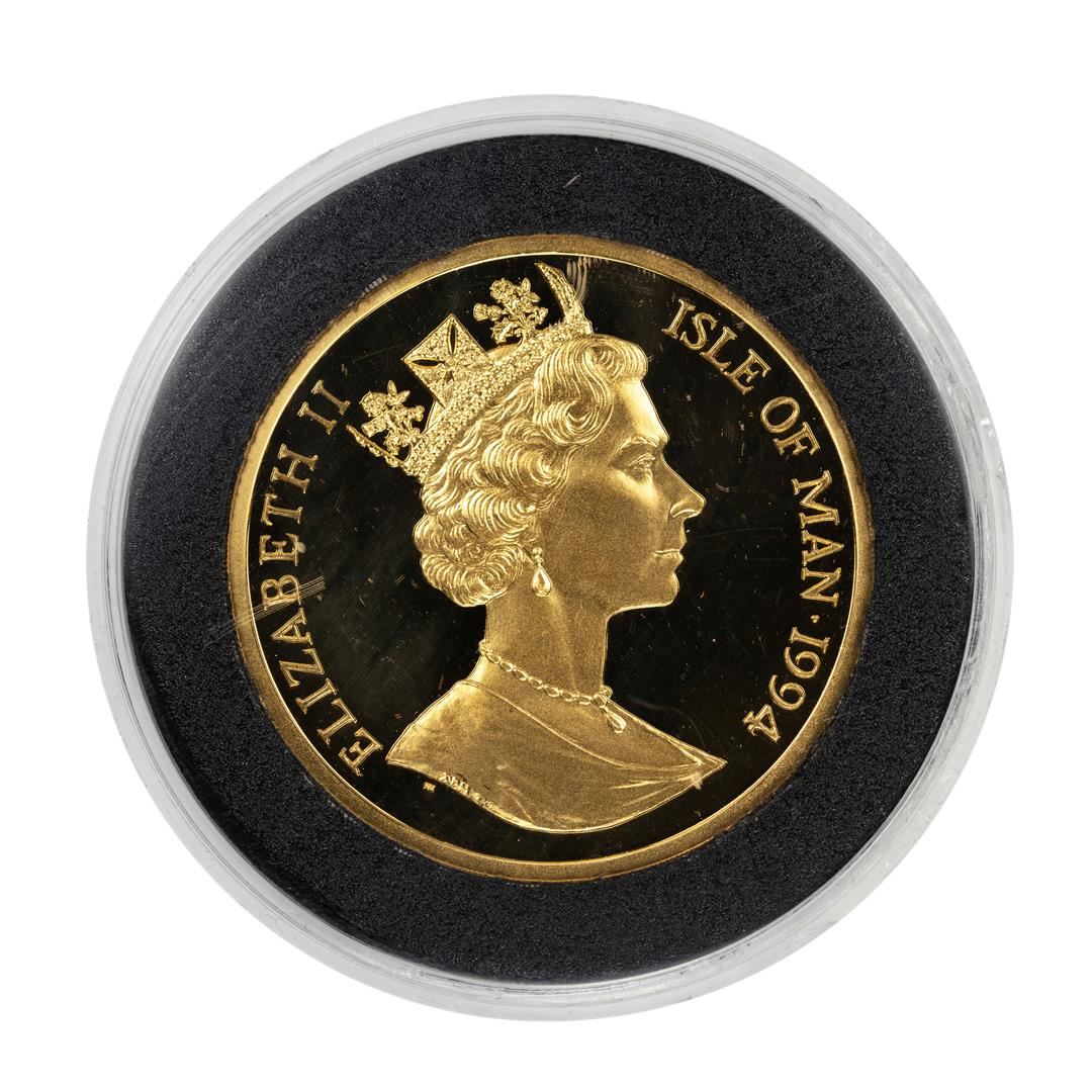 One 1994 Proof Isle of Man 5 Ounce .9999 Fine Gold Coin.