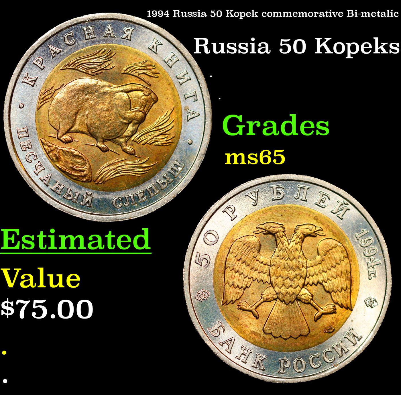1994 Russia 50 Kopek commemorative Bi-metalic Grades GEM Unc.