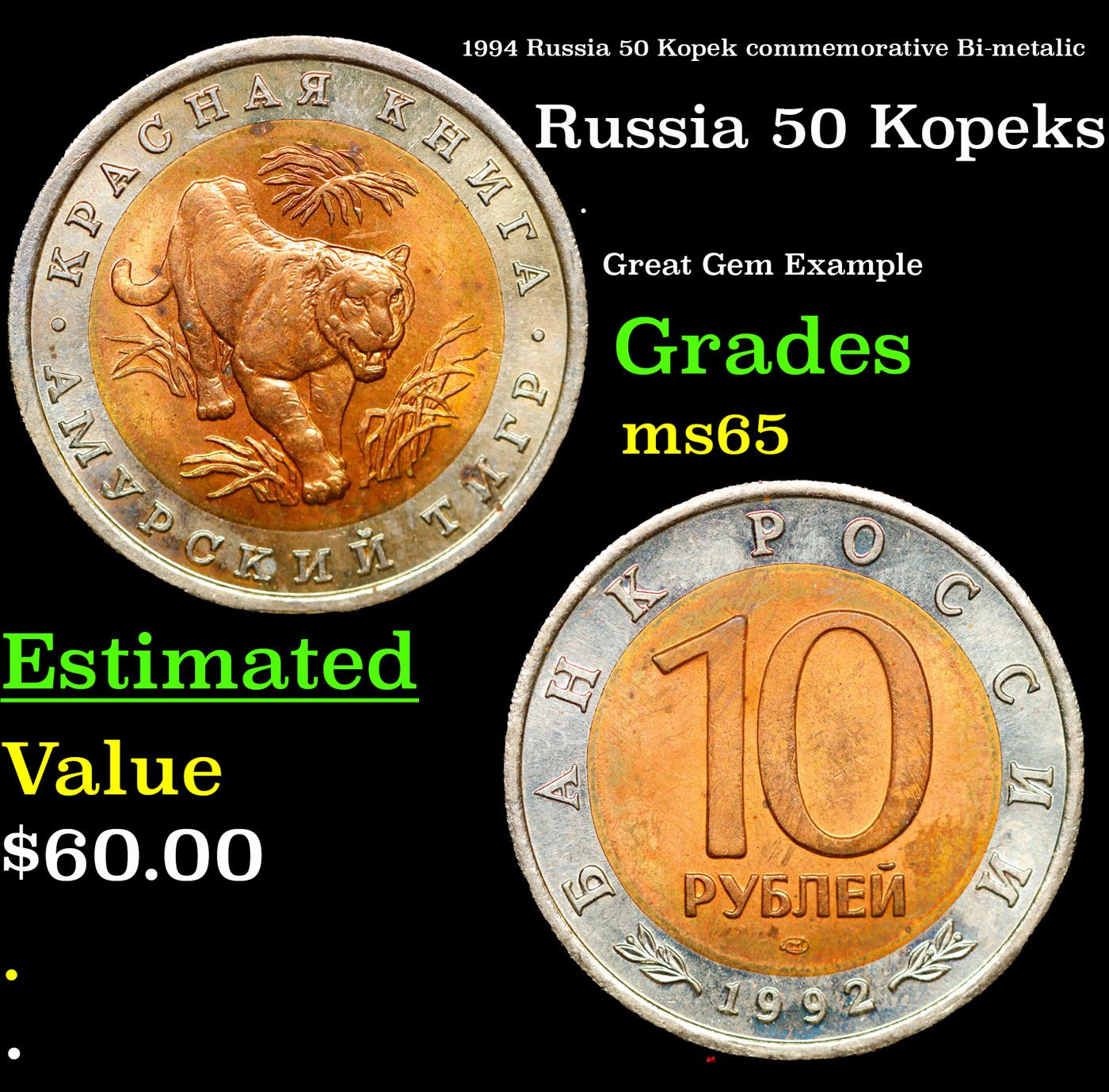 1994 Russia 50 Kopek commemorative Grades GEM Unc.