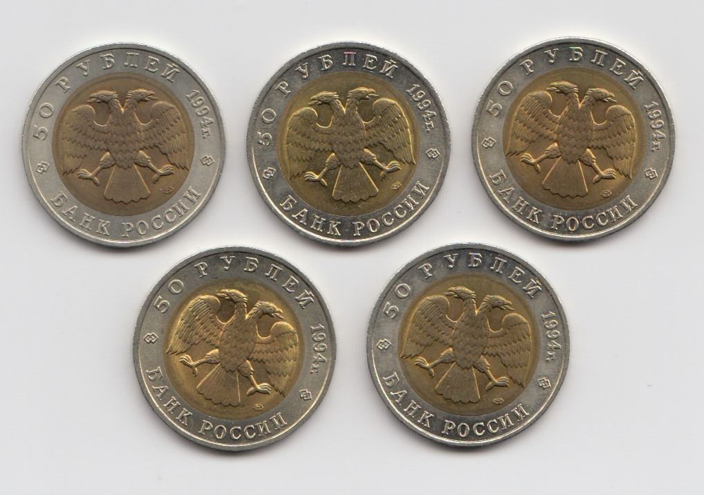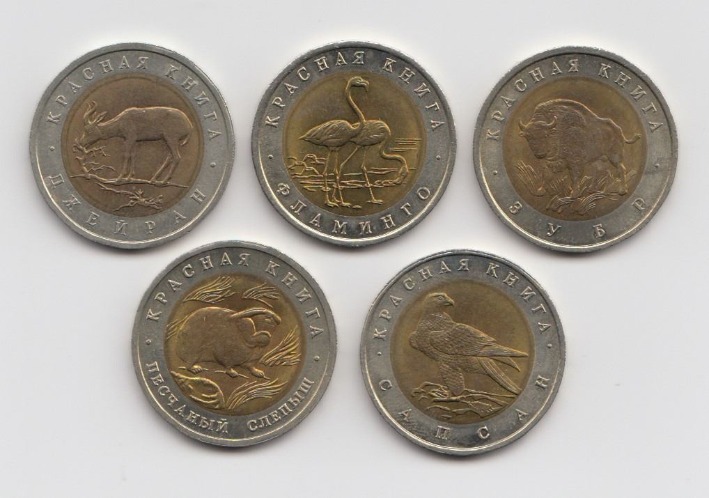 5 different bimetallic commemorative coins.