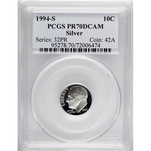 1994-S 10C Silver PR70 Deep Cameo PCGS. PCGS Popul