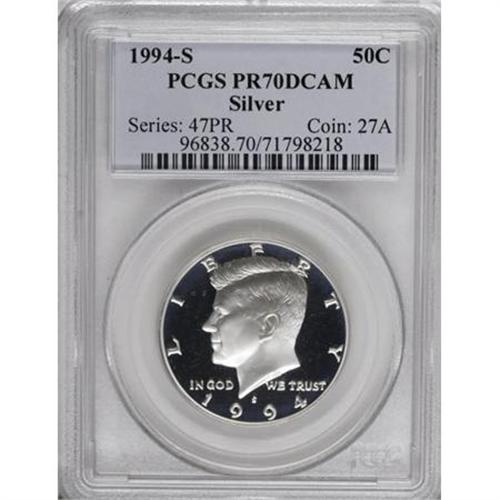 <B>1994-S 50C Silver PR70 Deep Cameo PCGS.</B></I> PCGS Population (61/0). NGC Census: (95/0). Numismedia Wsl. Price for NGC/PCGS coin in PR70: $300. (#96838)<BR><BR><b>Shipping:</b> Coins & Currency (<a target="_blank" href="http://www.heritageauctions.com/common/shipping.php">view shipping information</a>)