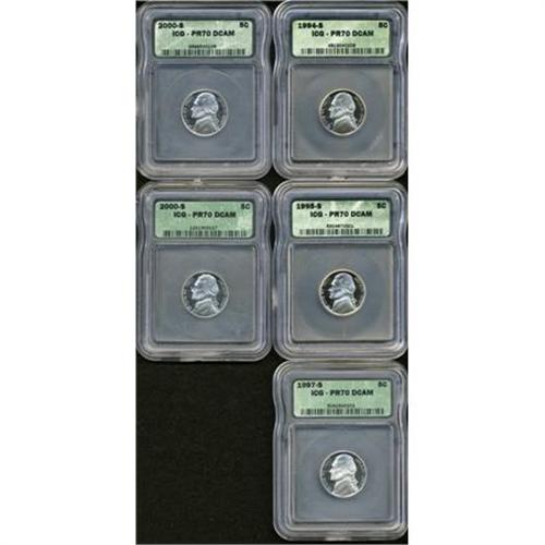<B>1994-S 5C PR70 Deep Cameo ICG; 1995-S PR70 Deep Cameo ICG; 1997-S PR70 Deep Cameo ICG;</B></I> and <B>(2) 2000-S PR70 Deep Cameo ICG.</B></I> <BR><BR><b>Shipping:</b> Coins & Currency (<a target="_blank" href="http://www.heritageauctions.com/common/shipping.php">view shipping information</a>)