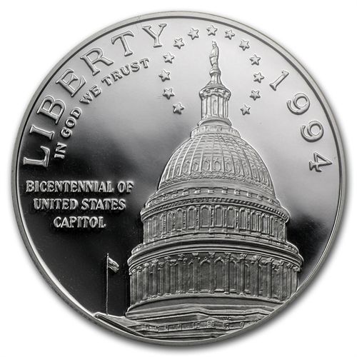 1994-S Capitol $1 Silver Commemorative - PR-70 DCAM PCG **|**|** Year: 1994 ; Mint Mark: PR-70 DCAM ; Grade: S - San Francisco ; Denomination: $1 ; MSRP: $600