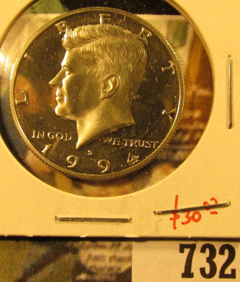 1994-S Silver PROOF Kennedy Half Dollar, value $30