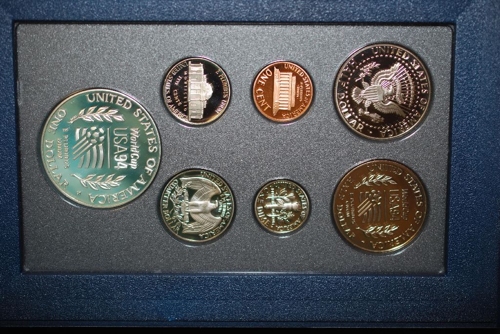 1994-S US Mint Prestige Proof Set With Commemorative World Cup Silver $1 & Half Dollar In Velvet Display Box With COA Included; EST. $25-35