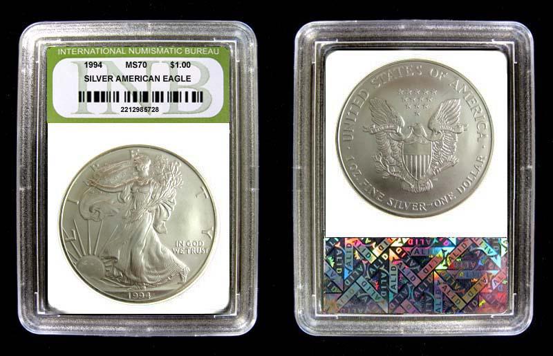 1994 SLABBED SILVER AMERICAN EAGLE HIGHEST GRADE INB GRADED MS70 - You may not receive the exact coin shown, but you will receive one of the same or better quality.