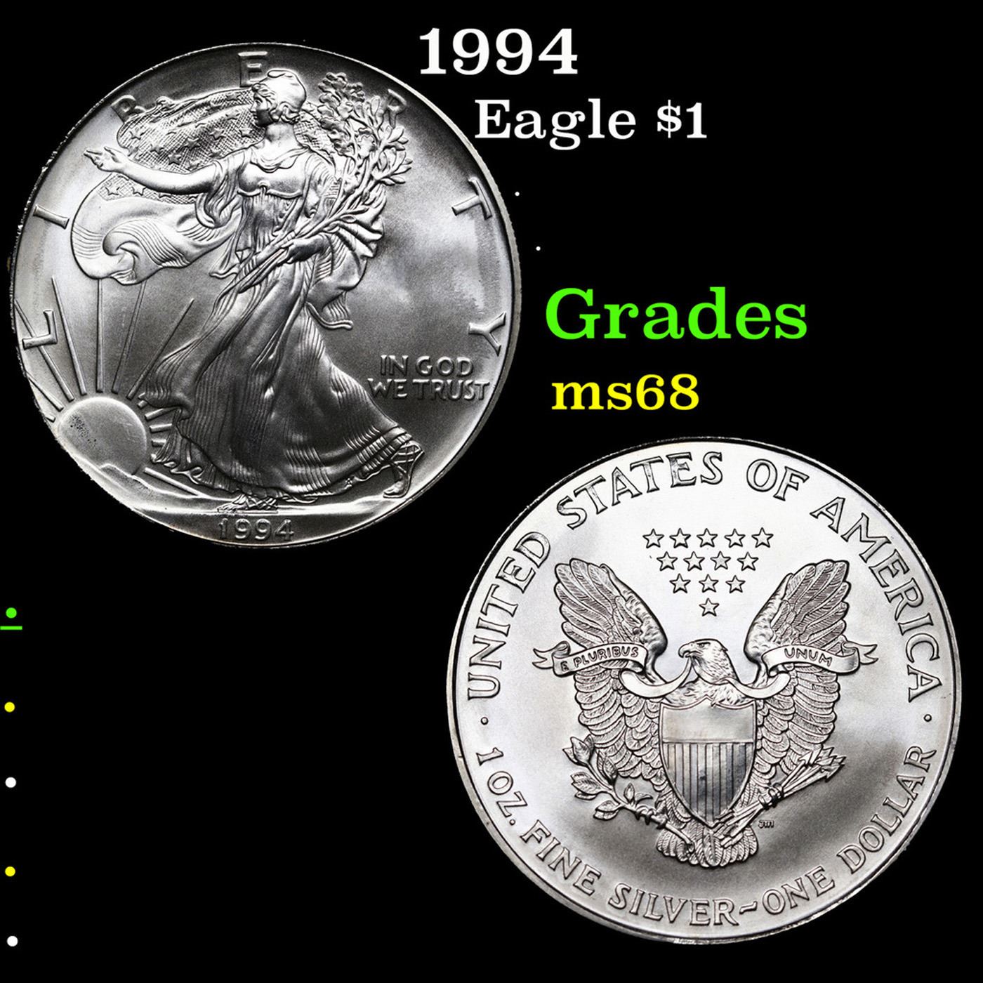1994 Silver Eagle Dollar $1 Grades GEM+++ Unc.