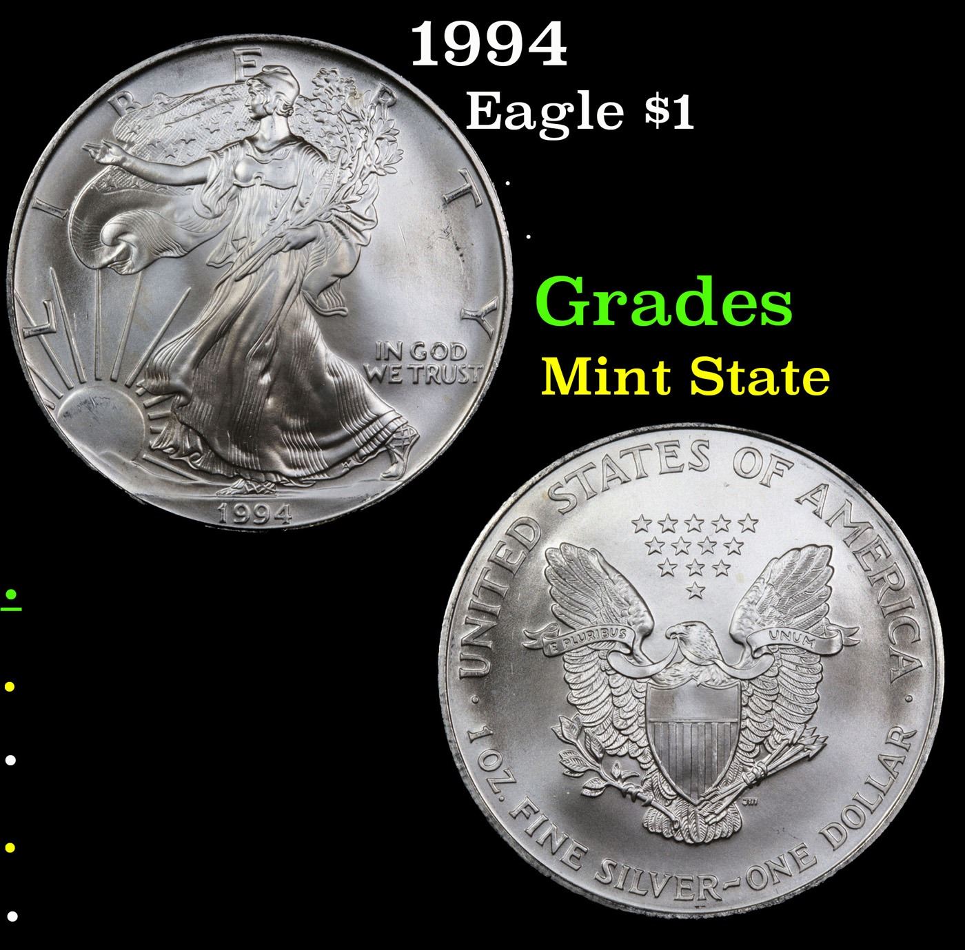 1994 Silver Eagle Dollar $1 Grades Mint State.