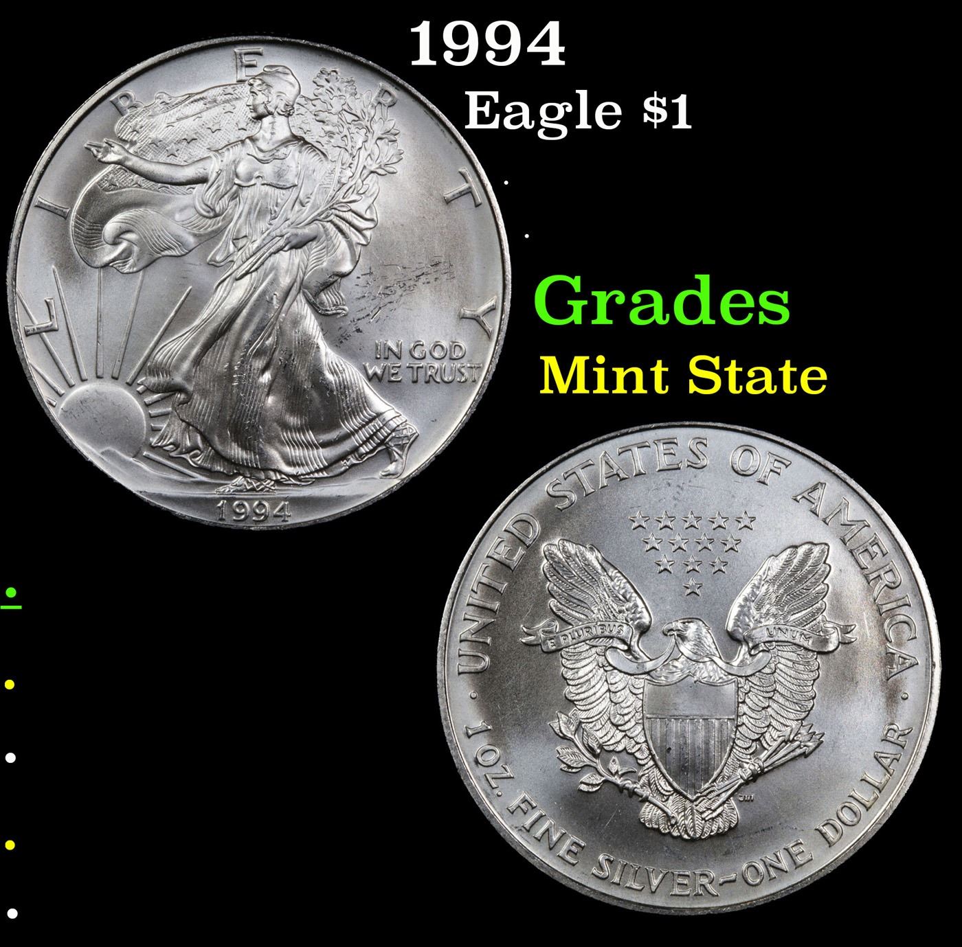 1994 Silver Eagle Dollar $1 Grades Mint State.