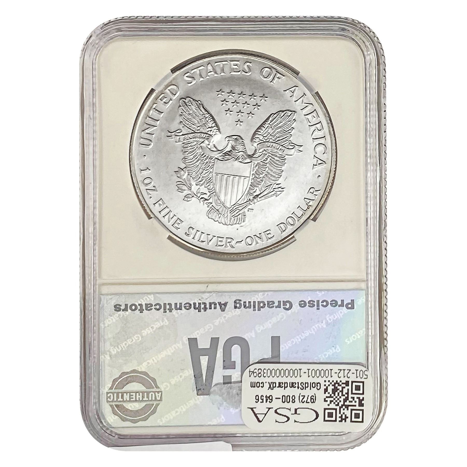 e. Coins sold referencing a third-party grading service are sold “AS IS” without any express or implied warranty, except for a guarantee by GSA that they are genuine. Removal or alteration of the holder, voids all of Bidder’s claims concerning that Product. Certain warranties may be available from the grading services and Bidders are referred to them for further details: Numismatic Guaranty Corporation (NGC), PO Box 4776, Sarasota, FL 34230, www.ngccoin.com/services/writtenguarantee.asp; Professional Coin Grading Services (PCGS), PO Box 9458, Newport Beach, CA 92658, www.pcgs.com/guarantee.html; ANACS, 6555 S. Kenton St., Ste. 303, Englewood, CO 80111; and Independent Coin Grading Co. (ICG), 7901 East Bellview, Ave., Suite 50, Englewood, CO 80111.