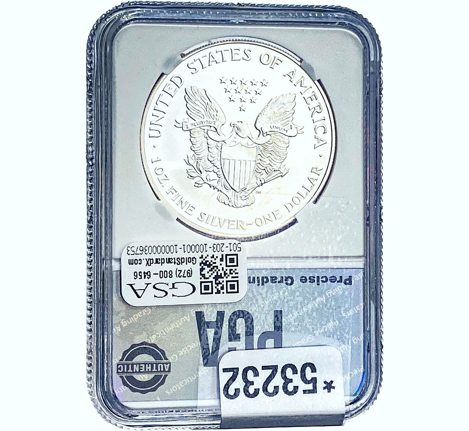 e. Coins sold referencing a third-party grading service are sold “AS IS” without any express or implied warranty, except for a guarantee by GSA that they are genuine. Removal or alteration of the holder, voids all of Bidder’s claims concerning that Product. Certain warranties may be available from the grading services and Bidders are referred to them for further details: Numismatic Guaranty Corporation (NGC), PO Box 4776, Sarasota, FL 34230, www.ngccoin.com/services/writtenguarantee.asp; Professional Coin Grading Services (PCGS), PO Box 9458, Newport Beach, CA 92658, www.pcgs.com/guarantee.html; ANACS, 6555 S. Kenton St., Ste. 303, Englewood, CO 80111; and Independent Coin Grading Co. (ICG), 7901 East Bellview, Ave., Suite 50, Englewood, CO 80111.