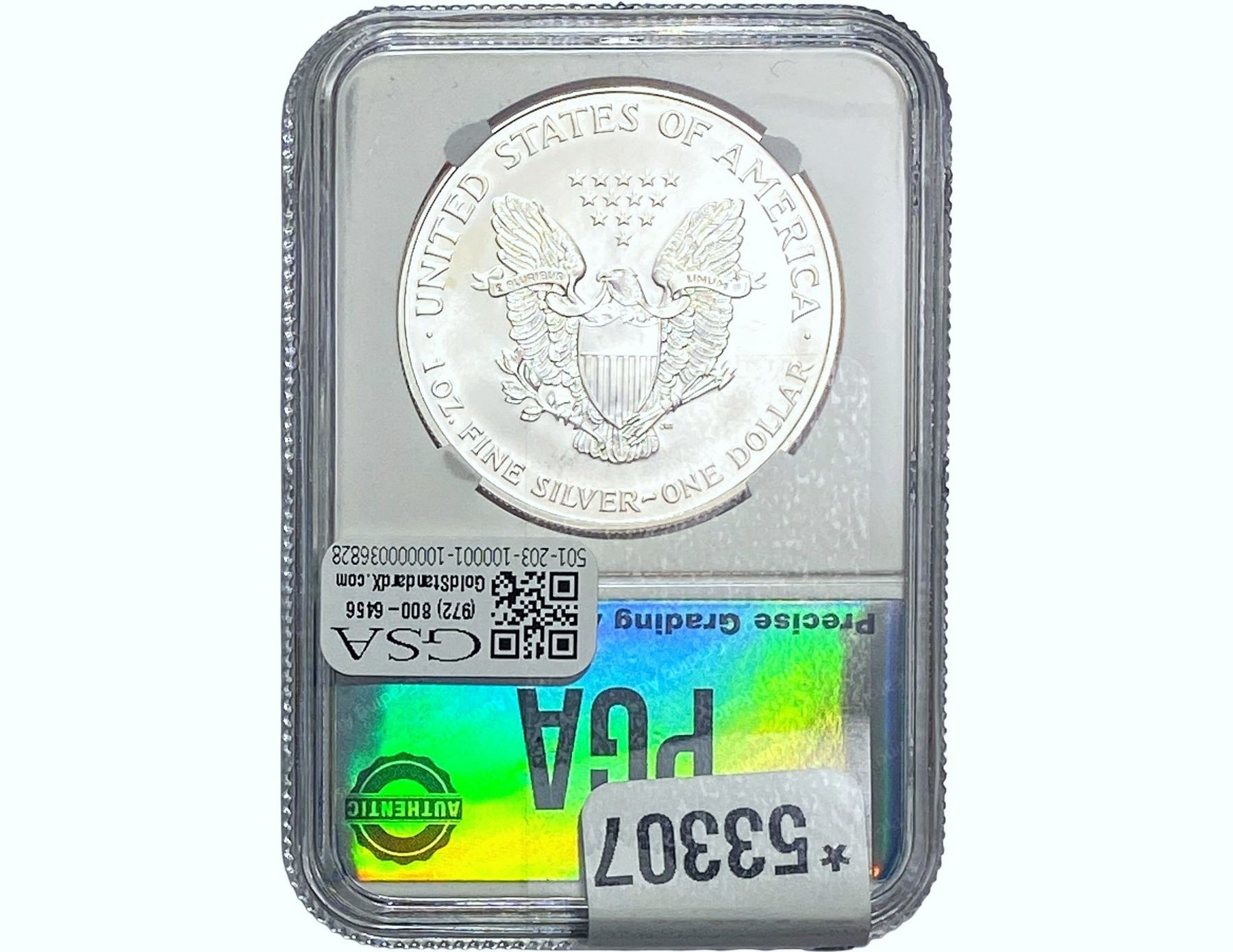 e. Coins sold referencing a third-party grading service are sold “AS IS” without any express or implied warranty, except for a guarantee by GSA that they are genuine. Removal or alteration of the holder, voids all of Bidder’s claims concerning that Product. Certain warranties may be available from the grading services and Bidders are referred to them for further details: Numismatic Guaranty Corporation (NGC), PO Box 4776, Sarasota, FL 34230, www.ngccoin.com/services/writtenguarantee.asp; Professional Coin Grading Services (PCGS), PO Box 9458, Newport Beach, CA 92658, www.pcgs.com/guarantee.html; ANACS, 6555 S. Kenton St., Ste. 303, Englewood, CO 80111; and Independent Coin Grading Co. (ICG), 7901 East Bellview, Ave., Suite 50, Englewood, CO 80111.