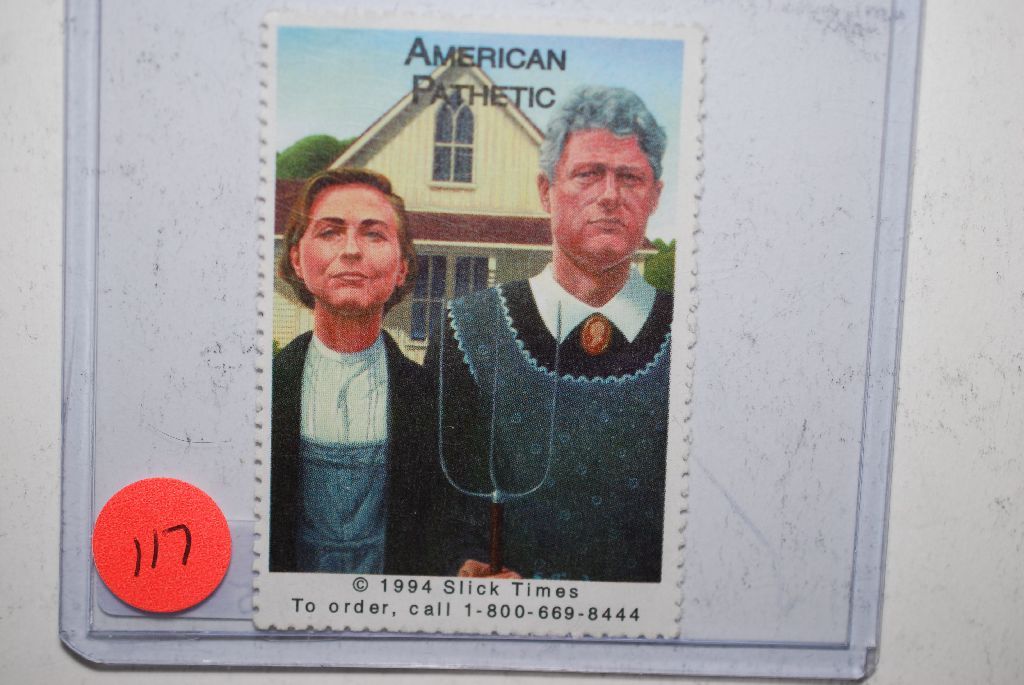 1994 Slick Times Collectible Stamp; Bill & Hillary Clinton As American Gothic; EST. $5-10