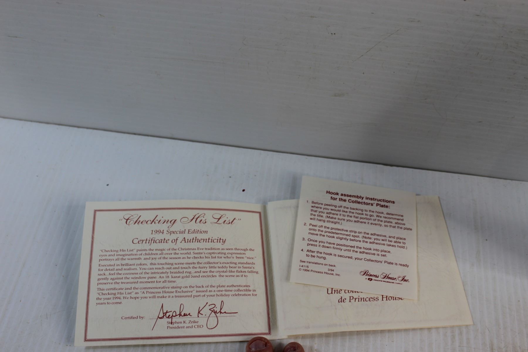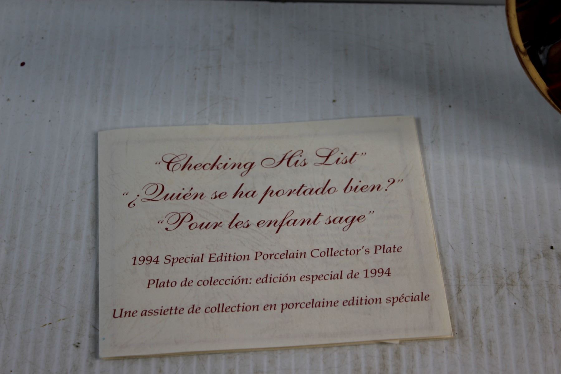1994 Special Edition Christmas Porcelain Collector's Plate with Certificate of Authenticity