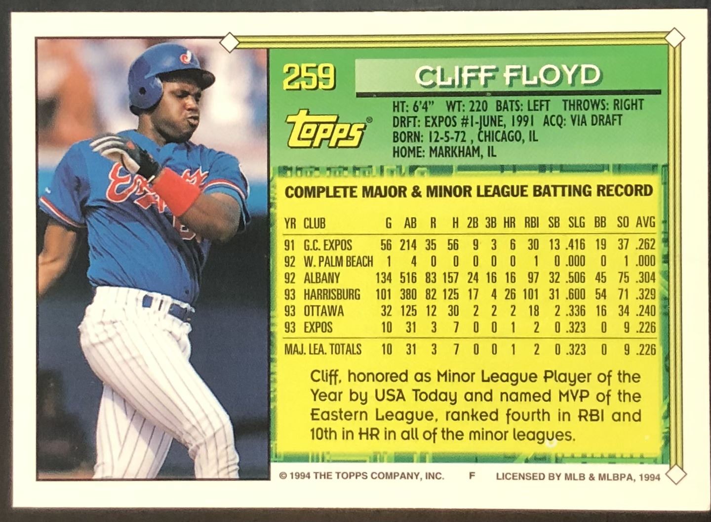 Card #259 MLB, baseball, rookie
