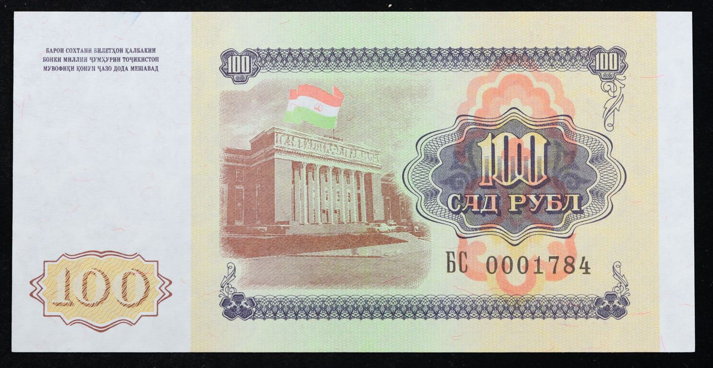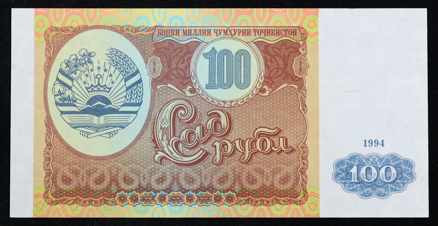1994 Tajikistan 100 Rubles Note P# 6A Grades Gem CU.