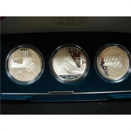 1994 U.S. VETERANS COIN SET. Proof. 3 coin set. In case with box.