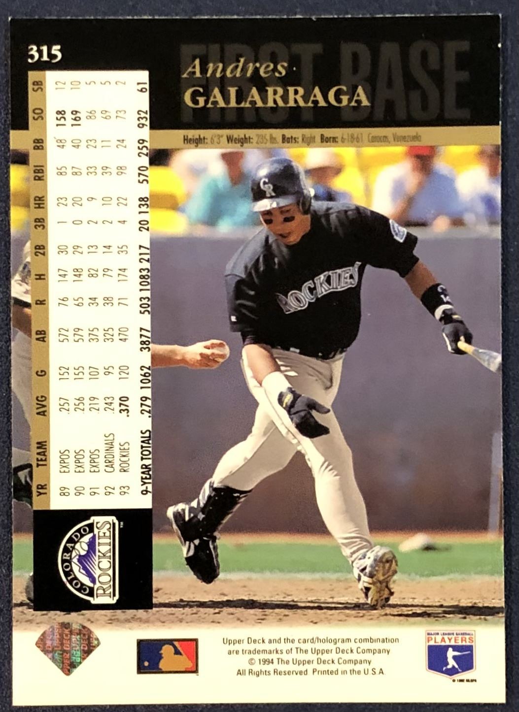 Card #315 MLB, baseball, UD