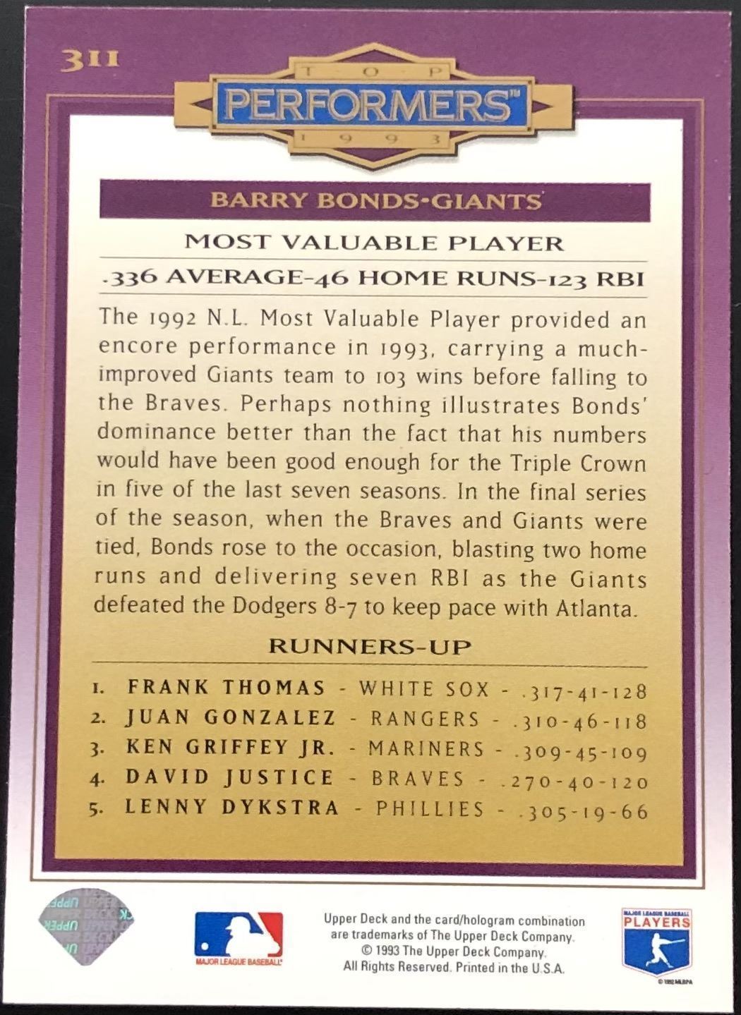 Card #311 MLB, baseball, UD