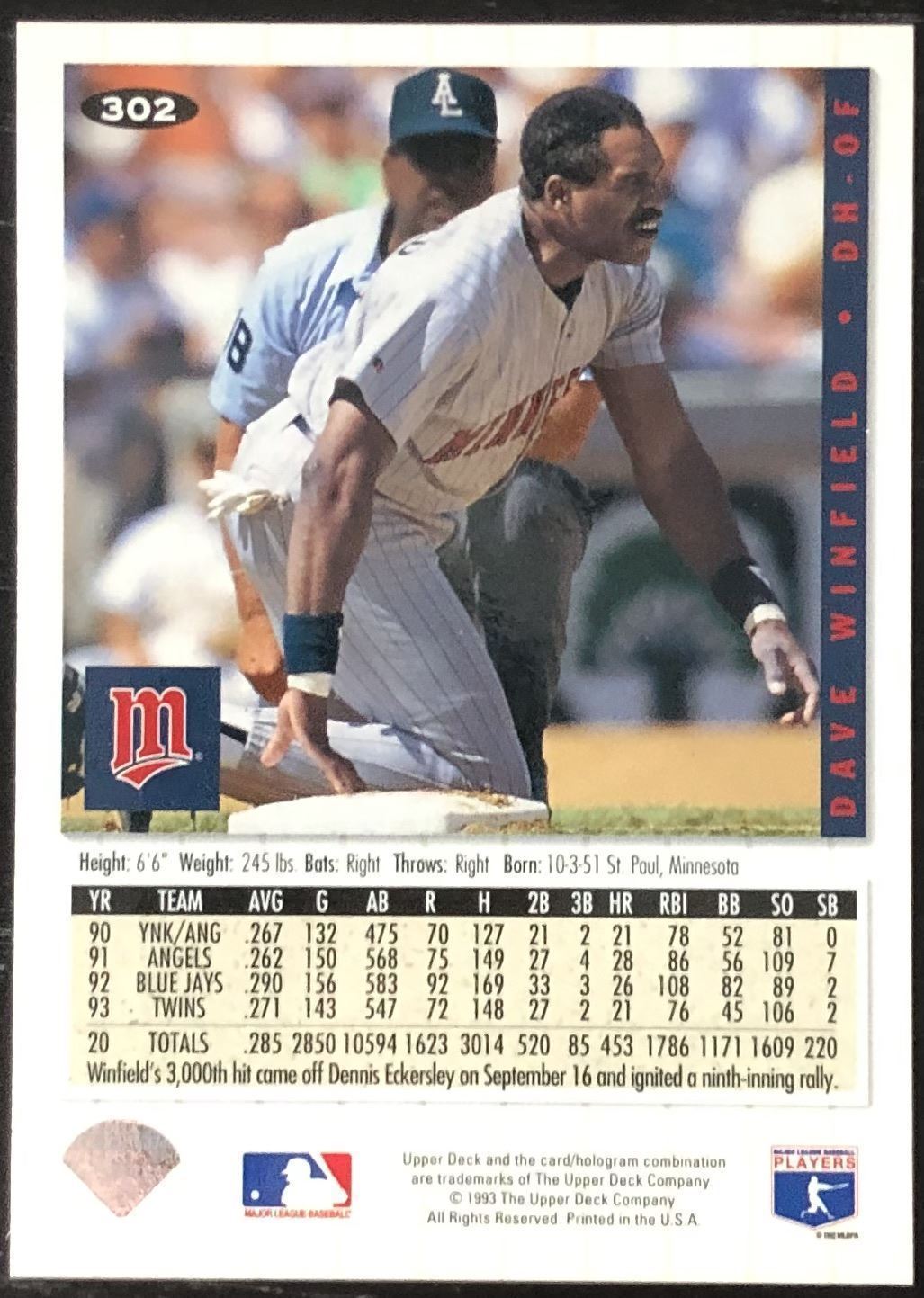 Card #302 UD, MLB, baseball, hall of fame