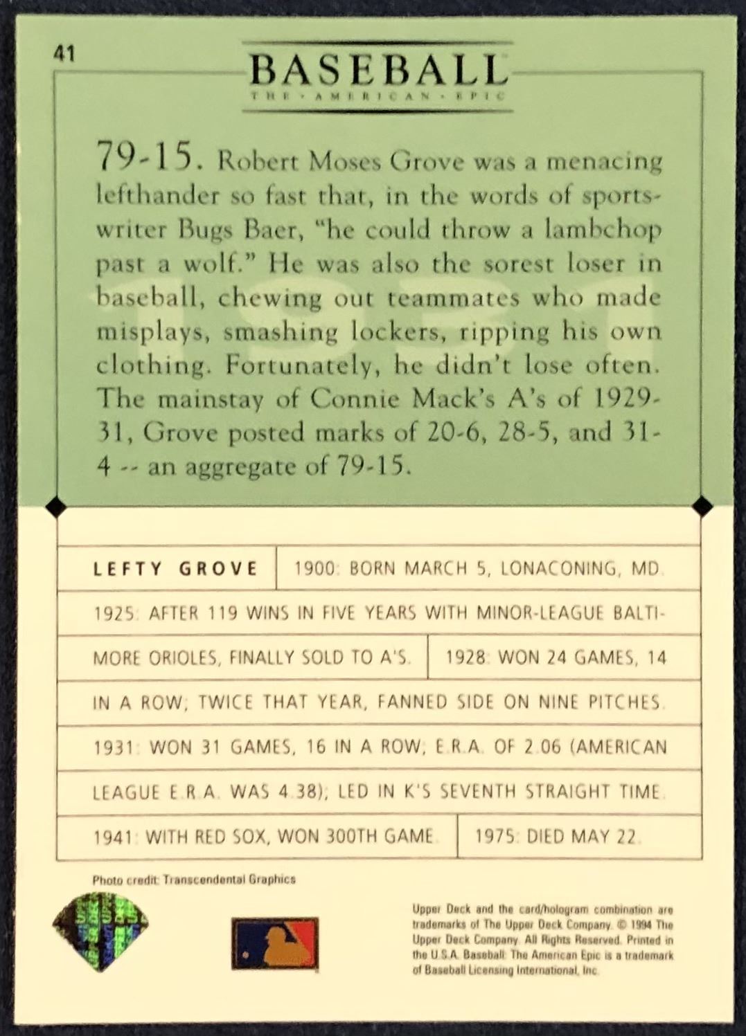 Card #41 MLB, baseball, UD, hall of fame