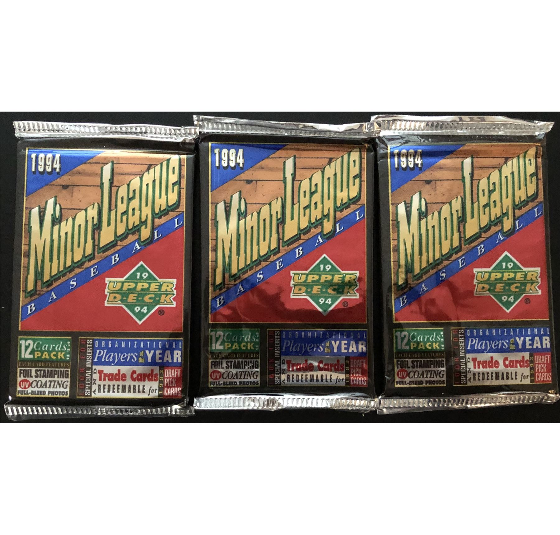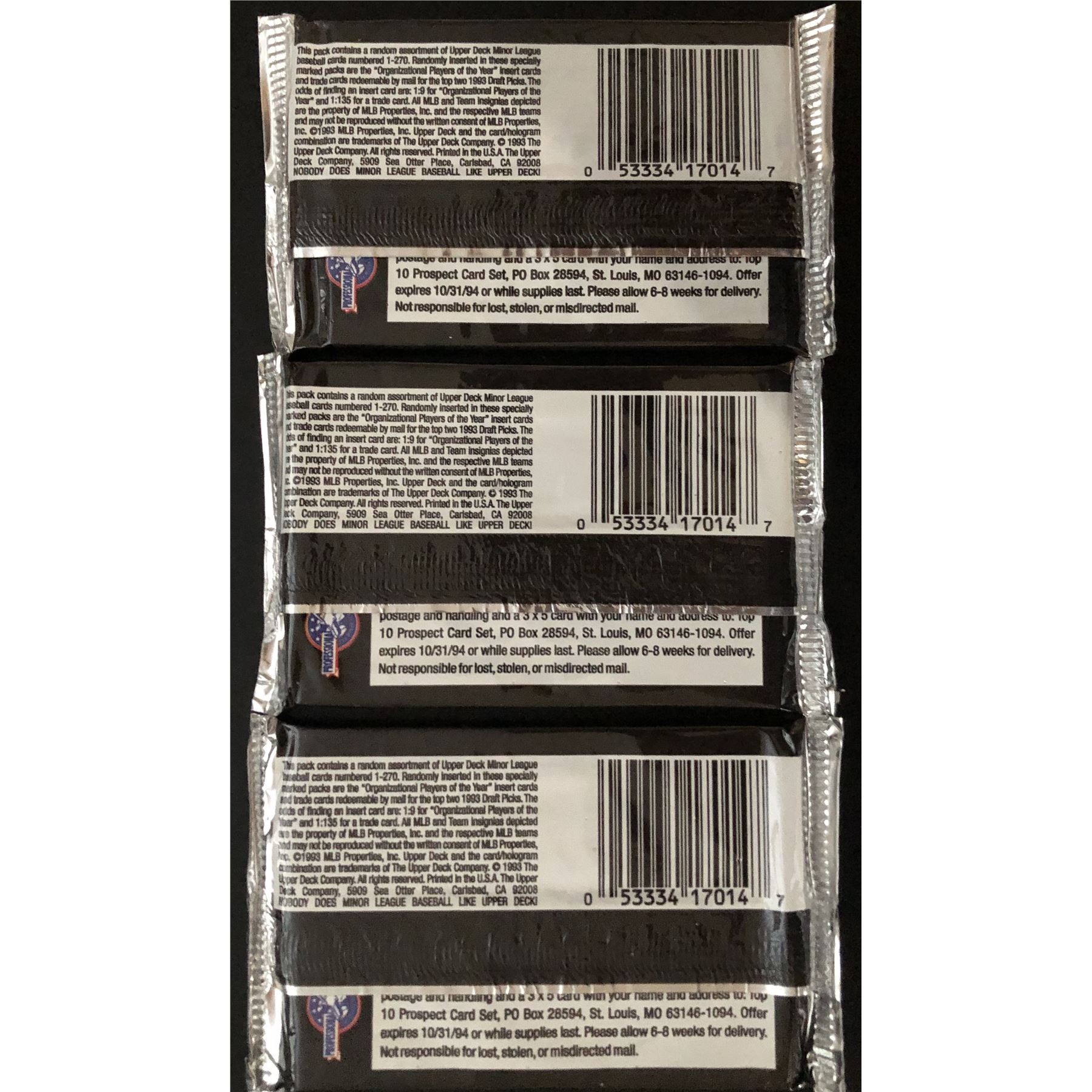 Three sealed foil packs, each containing 12 cards MLB, baseball, UD, rookie