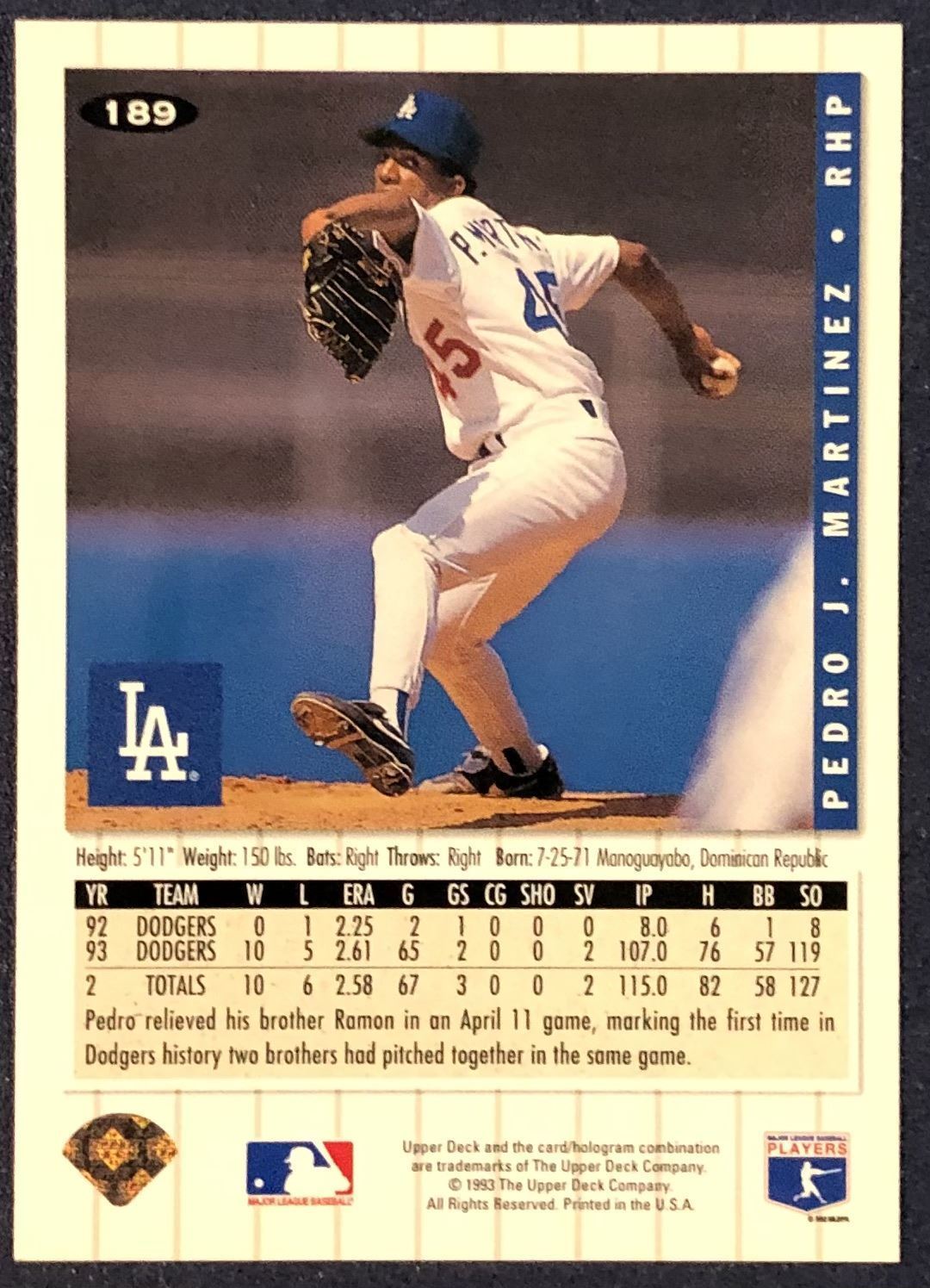 Card #189 MLB, baseball, UD, hall of fame, rookie