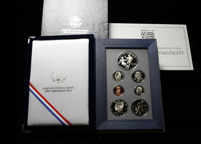Contains the 1994 World Cup USA 90% silver US Silver Dollar & the 1994 World Cup USA Half Dollar plus the Traditional 5 pieces 1994 Proof Set. Estimated Value $100