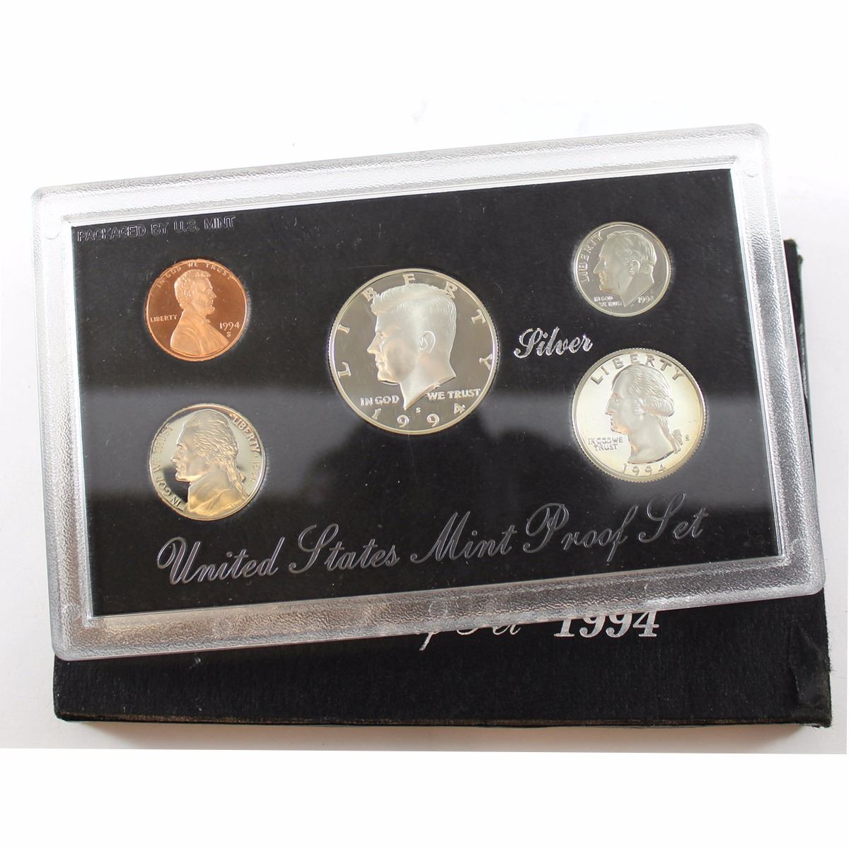 1994 United States Silver Proof Set in Original Envelope with COA (quarter is lightly toned and the envelope is lightly worn)