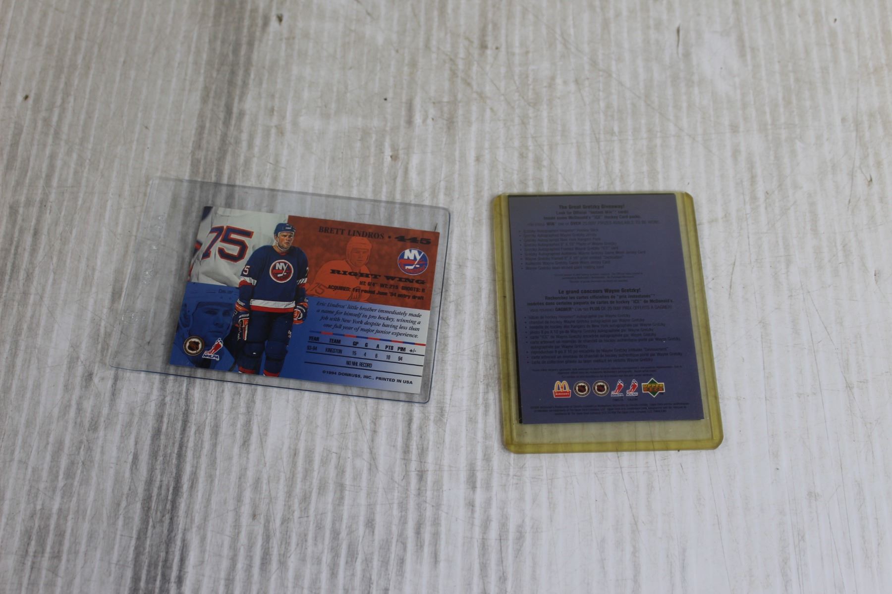 1994 Upper Deck Wayne Gretzky Card + Donruss 1994 Brett Lindros Card