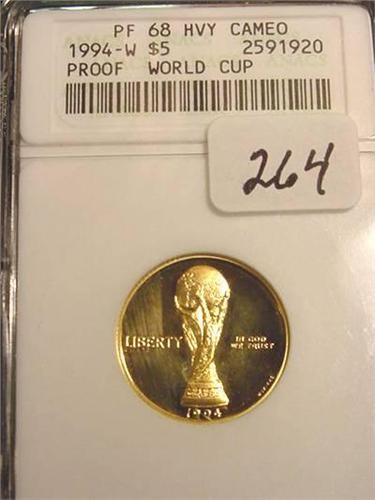 1994-W $5.00 Commemorative World Cup Gold Coin ANACS Proof 68 Hvy Cameo