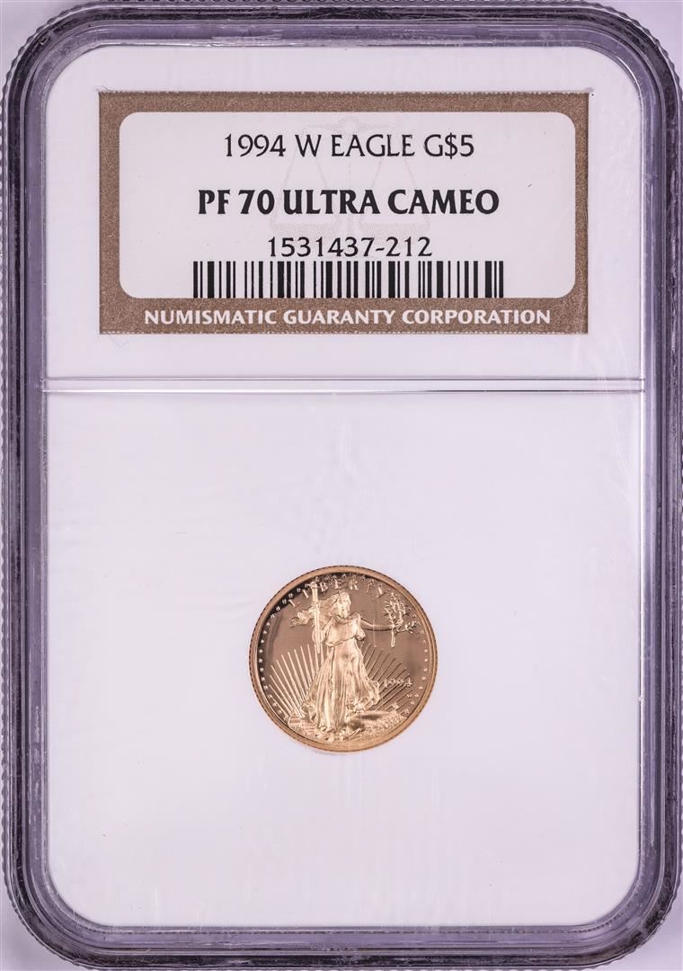 One 1994-W $5 Proof American Gold Eagle Coin NGC PF70 Ultra Cameo. NGC Certified.