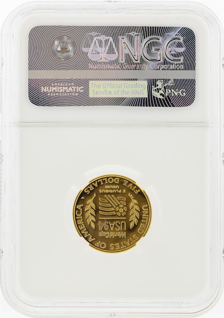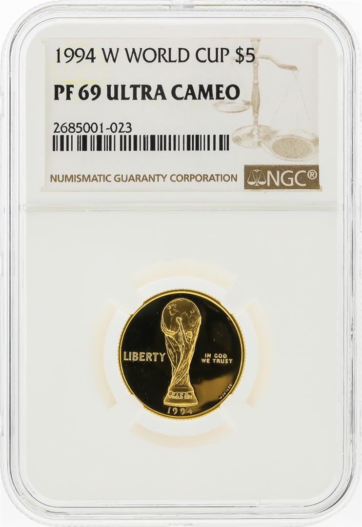 One 1994-W $5 World Cup Gold Coin NGC Graded PF69 Ultra Cameo. NGC Certified.