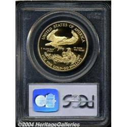 <B>1994-W<G$50> One-Ounce Gold Eagle PR70 Deep Cameo PCGS.</B></I> A needle-sharp and radiant representative with outstanding contrast and unimprovable preservation. Population: 6 in 70 Deep Cameo (3/04). <BR><BR><B>Important notice:</B> Heritage usually auctions material at the rate of 200-250 lots per hour. On some occasions eBay Live bid software or the Internet may not be able to keep up with the pace of the auction. We recommend placing a realistic absentee bid now as insurance to avoid disappointment. Occasionally the auctioneer may eliminate or reject an eBay Live bid, and the auctioneer may also reopen a lot after the close of the eBay live bidding (usually because we missed an audience bid), and may reject your bid even if it shows you as the winning bidder. By bidding via eBay Live, you agree that Heritage may award the lot to another bidder at its sole discretion under the circumstances described above or any other reasonable circumstances. Since eBay bids are not shown to us until we open the lot on the floor, we treat those bids just like floor bids. In most cases the floor responds before the eBay bid is presented to us, due to Internet lag time, so for consistency we have made it a policy that floor bids are always considered first over tie eBay live bids. Also please note that all Heritage lots purchased through eBay Live carry a 20% Buyer's Premium. Please make sure you read the Terms and Conditions before you bid. </span></font></tr></table></td></tr></table>