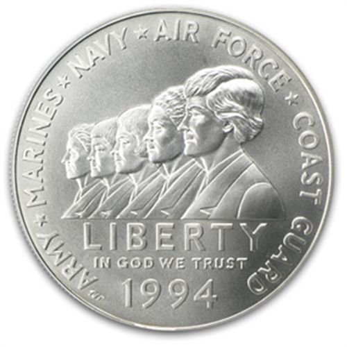 1994-W Women in Military $1 Silver Commemorative - MS-7 **|**|** Year: 1994 ; Mint Mark: MS-70 ; Grade: W - West Point ; Denomination: $1 ; MSRP: $300