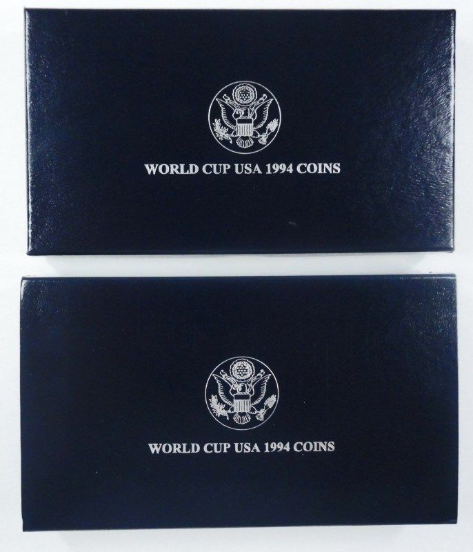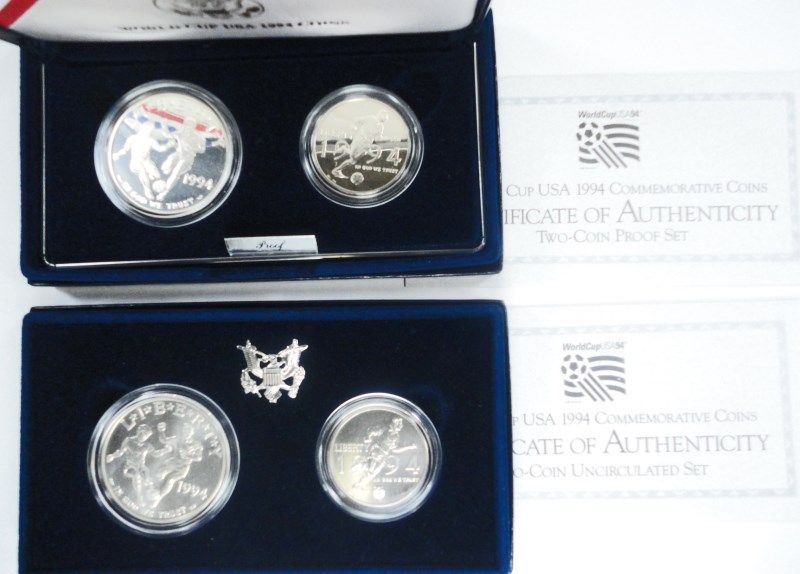 1994 WORLD CUP Pf & UNC 2 PCS COMMEM SETS, SILVER DOLLARS/ CLAD HALVES NICE!!