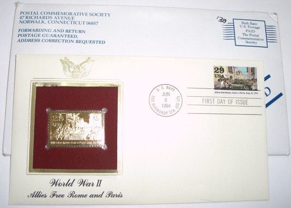 1994 WORLD WAR II GOLD STAMP FIRST DAY OF ISSUE *COMES IN ORIGINAL POSTAL PACKAGE WITH CERT.*!!! ***Coin, Currency & All Items Listed in this auction - Grades, Conditions and Values are not Safe Deposit Coins LLC Responsibilty. Grades, Condition and Values are determined by Consigner(s) & Buyers ONLY***