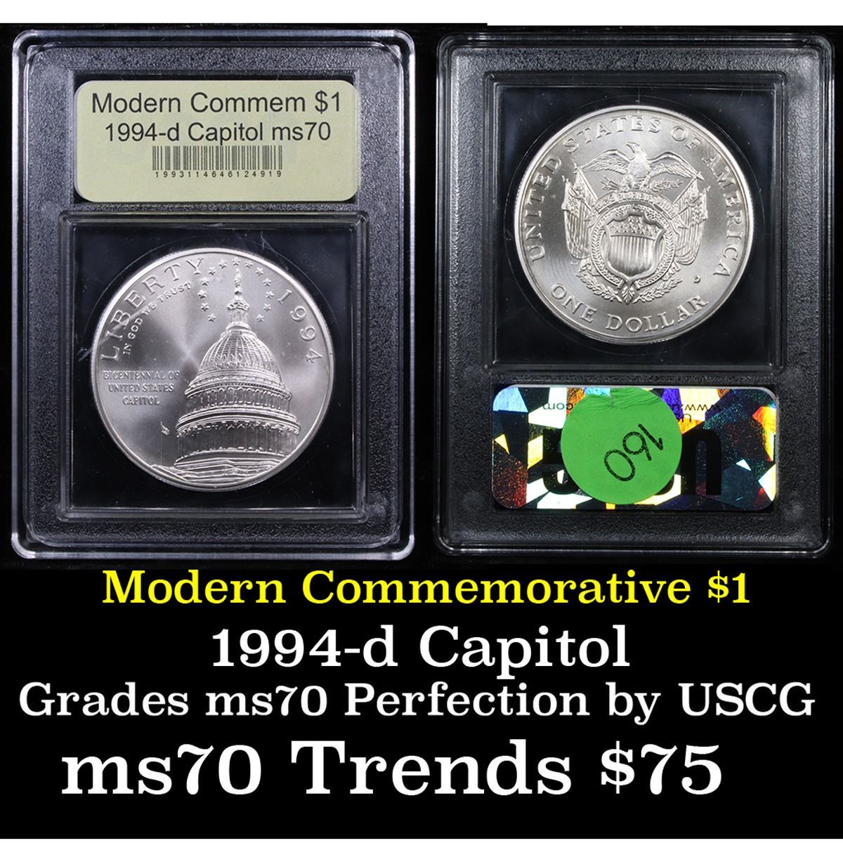 1994-d Capitol Modern Commem Dollar $1 Graded ms70, Perfection By USCG. The 1994 Capitol Bicentennial Silver Dollar was for the 200th anniversary of the U.S. Capitol building in Washington DC. This Uncirculated dollar is graded Perfection ms70 by USCG.