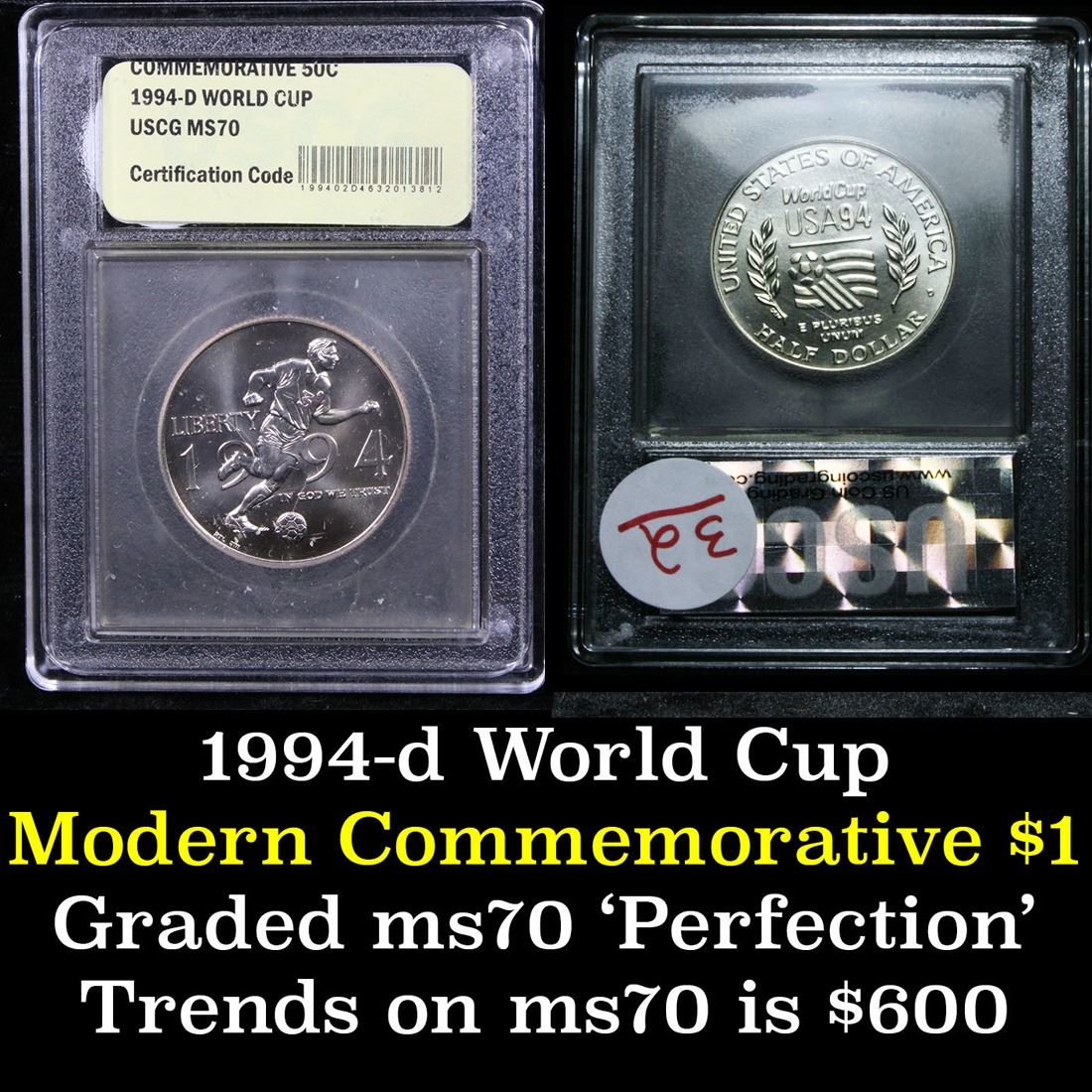 1994-d World Cup Modern Commem Half Dollar 50c Graded ms70, Perfection By USCG.