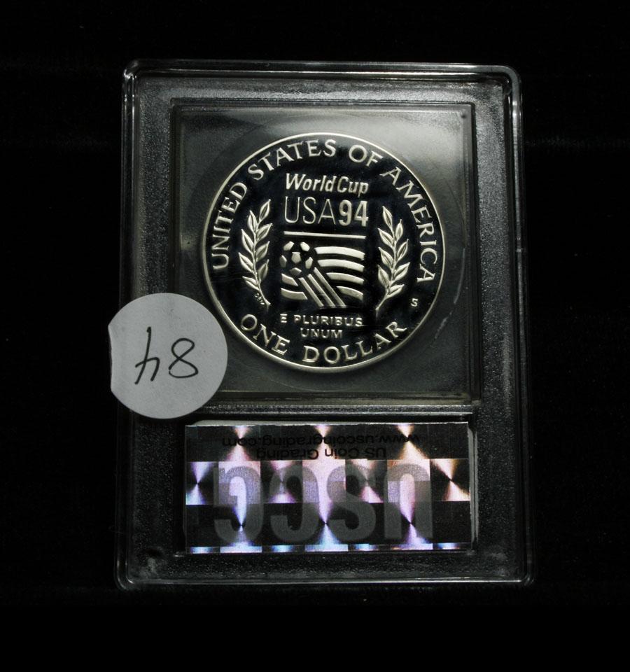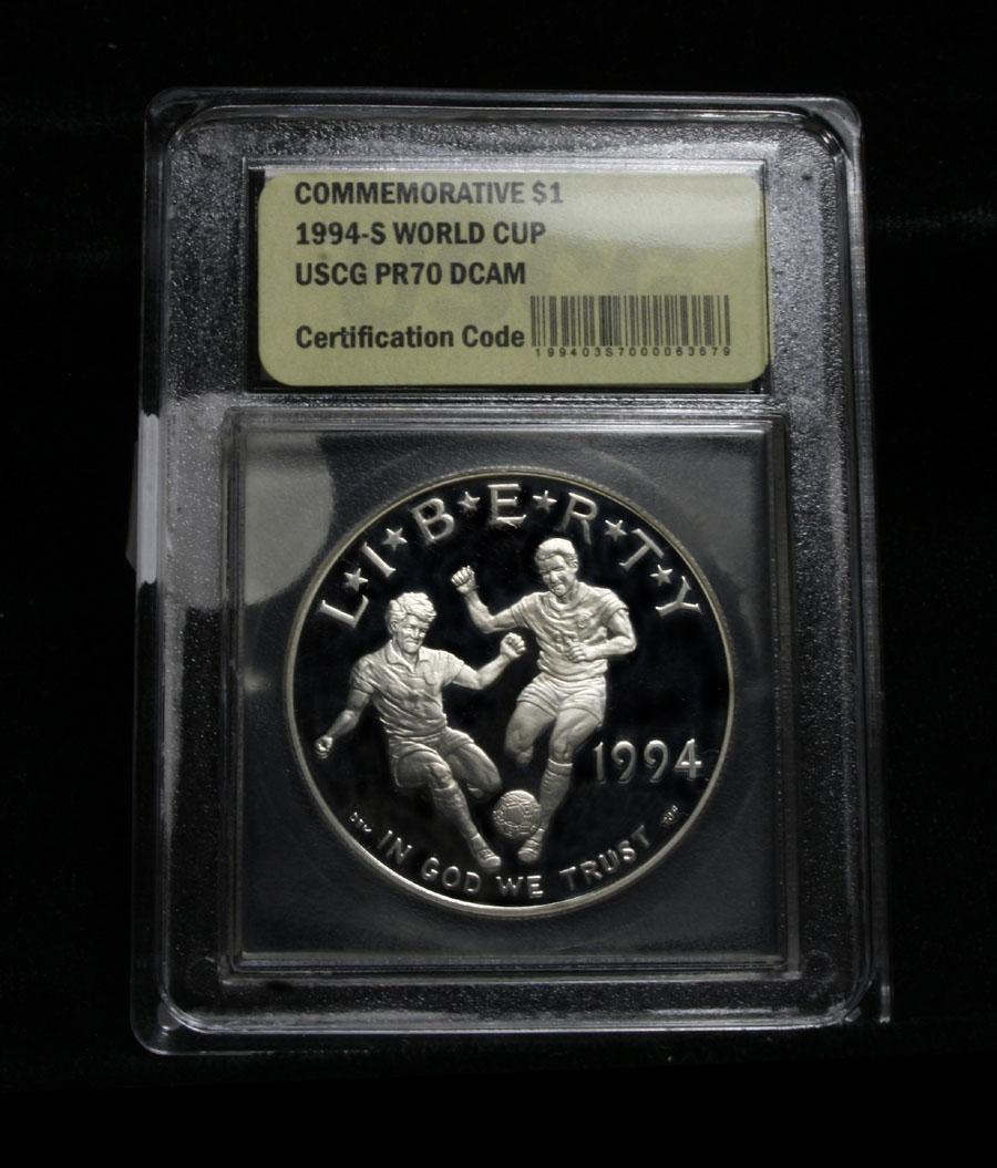 The 1994 World Cup Silver Dollar was issued as part of a three coin program to celebrate the XV FIFA World Cup playoff.. PCGS lists PR70 DCAM as $1050. This Perfect coin is graded PR70 Deep cameo by USCG. Estimated Value $300