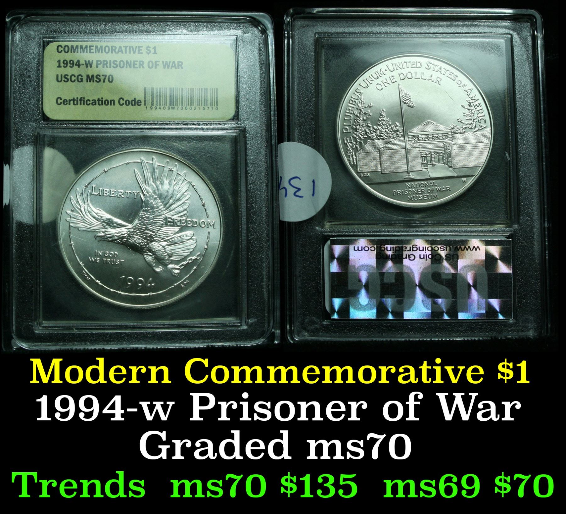 1994-w Prisoner of War Modern Commem Dollar $1 Graded ms70, Perfection By USCG. 0