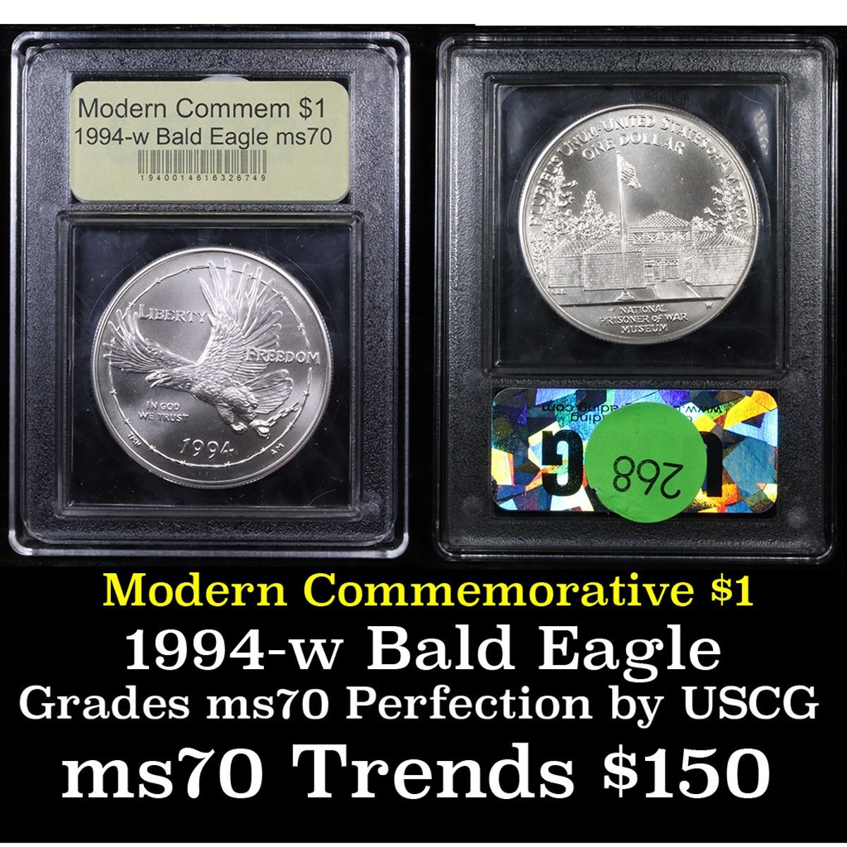 1994-w Prisoner of War Modern Commem Dollar $1 Graded ms70, Perfection By USCG. The 1994 Prisoner of War Memorial Silver Dollar was one of three similar silver dollar commemorative coin programs including the Women in Military Service Memorial and Vietnam Veterans Memorial Dollars. This coin was issued for the Prisoner of War Memorial Museum to be built in Andersonville, Georgia. This coin is graded ms70 by USCG.