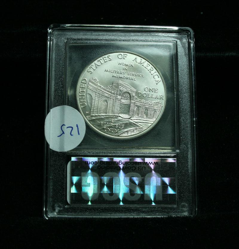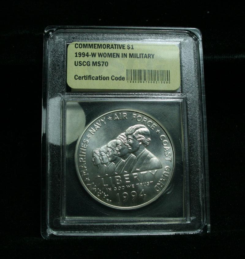 The 1994 Women in Military Service Silver Dollar was one of three similar silver dollar commemorative coin programs including the Women in Military Service Memorial and Vietnam Veterans Memorial Dollars. The 1994 Women in Military Service Memorial Silver Dollar was issued for the construction of a new memorial complex for women in military service. PCGS lists ms70 at $325. This coin is graded ms70 by USCG. Estimated Value $150