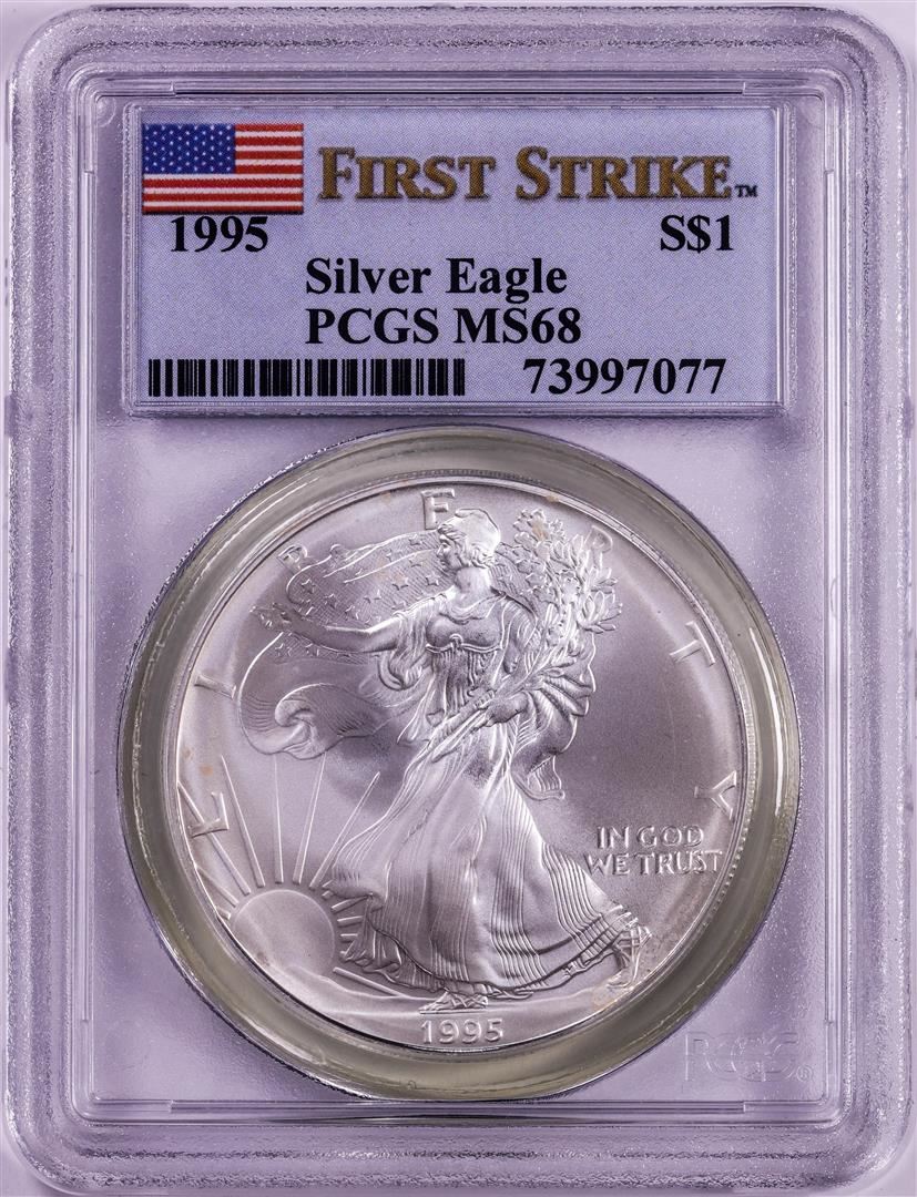 One 1995 $1 American Silver Eagle Coin PCGS MS68 First Strike. PCGS Graded.
