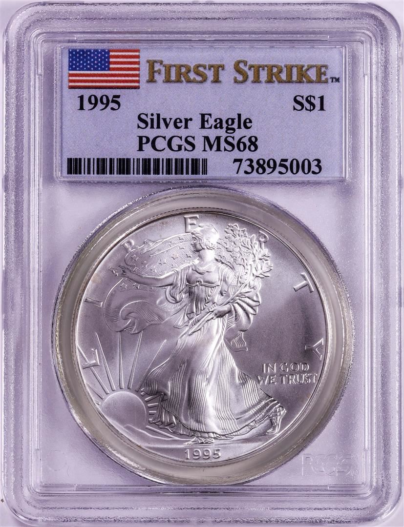 One 1995 $1 American Silver Eagle Coin PCGS MS68 First Strike. PCGS Graded.