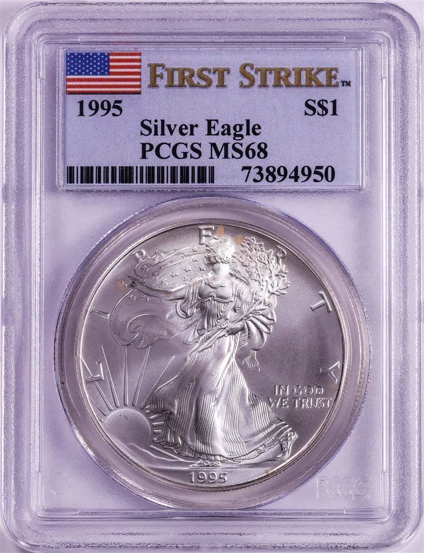 One 1995 $1 American Silver Eagle Coin PCGS MS68 First Strike. PCGS Graded.